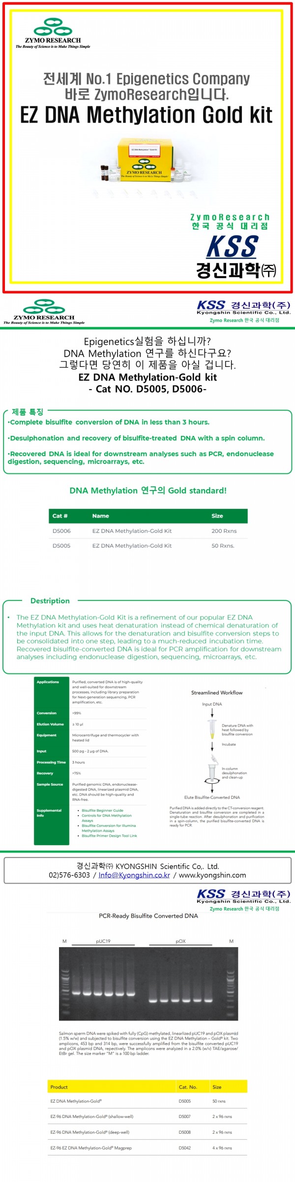 #경신과학 #KSS #ZYMORESEARCH #Methylation #EPIGENETICS #BisulfateConversion #EZDNAMethylationGoldKit
