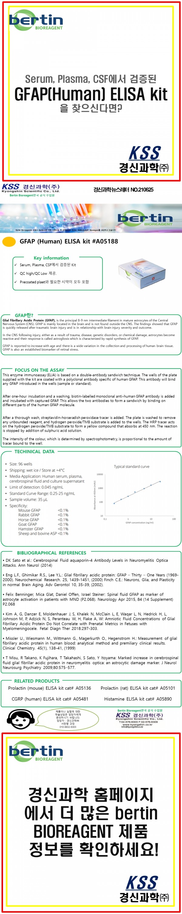 Serum, Plasma, CSF에서 검증된 GFAP (Human) ELSIA kit 를 찾으신다면? 많은 연구자들이 논문으로 증명한 고품질 bertin Bioreagent사 ELISA kit를 경신과학에서 만나세요! #경신과학 #KSS #GFAP #ELSIA #bertin #bertinbioreagent #GlialFibrillaryacidicprotein #serum #Plasma #CSF