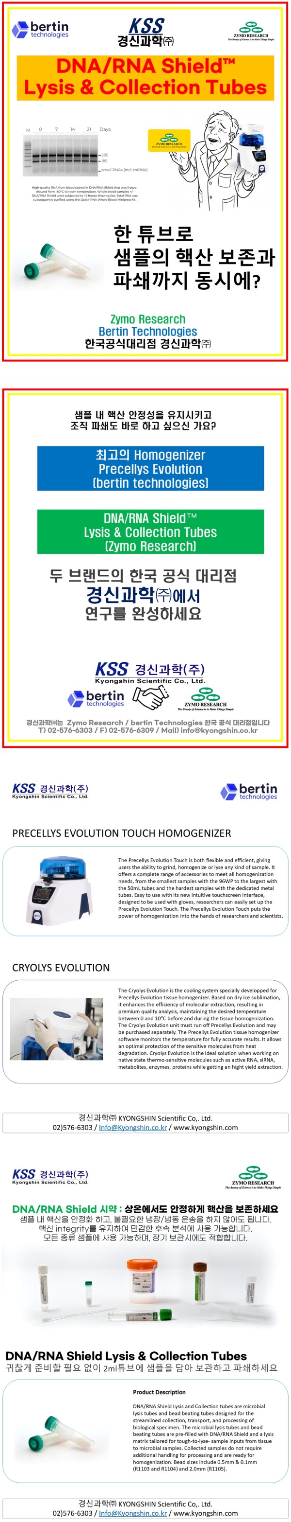 #경신과학 #KSS #bertin #ZymoResearch #Precellys #DNARNAShield #SamplePreservation #Lysis #Homogenizing