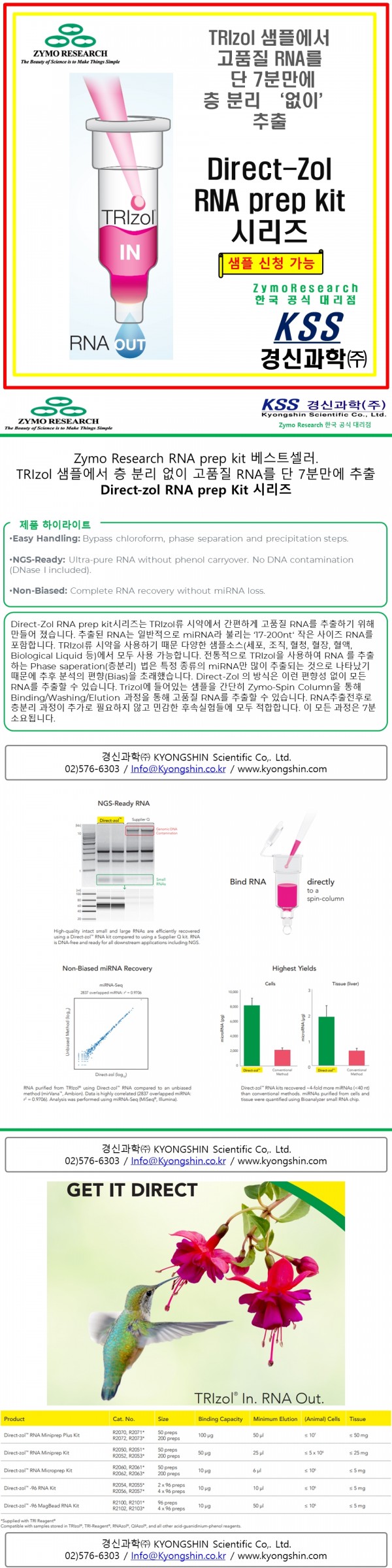 #경신과학 #KSS #Zymo #ZymoResearch #Directzol #RNA #Trizol #No_Phase_Saperation #7Min