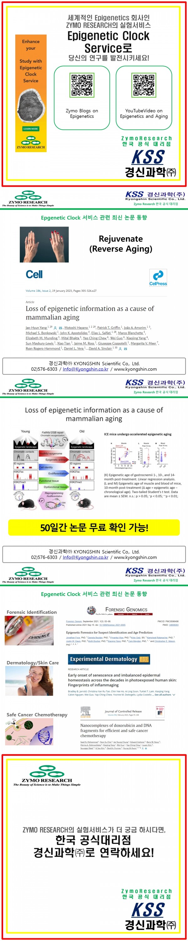 #경신과학 #KSS #Zymo #ZymoResearch #Epigenetics #Article # Reference #Aging #ExperimentalService #ReverseAging #Forensic #dermatology #skincare #cancer