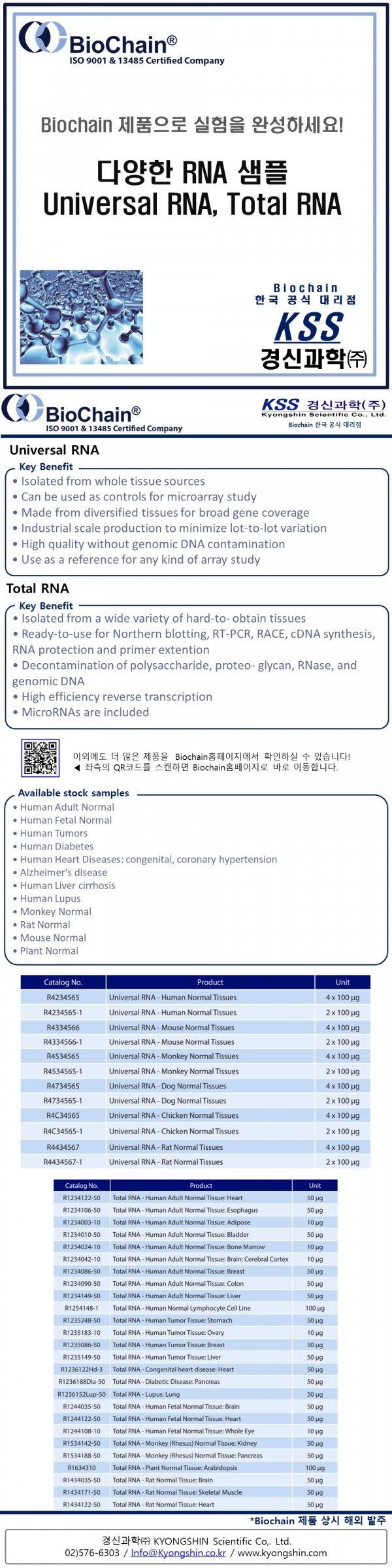 #경신과학 #KSS #Biochain #RNA #UniversalRNA #TotalRNA