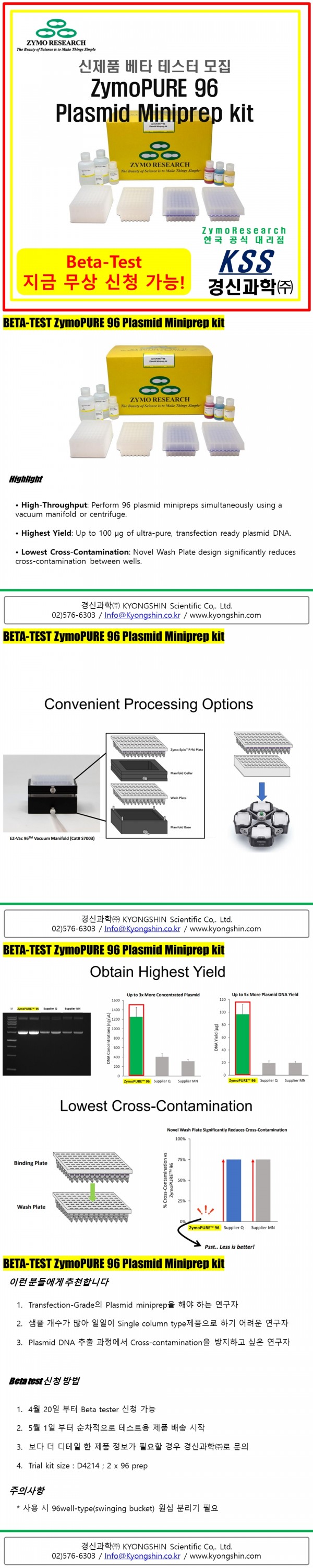 신제품 베타테스터 모집] ZymoPURE 96 Plasmid miniprep kit
