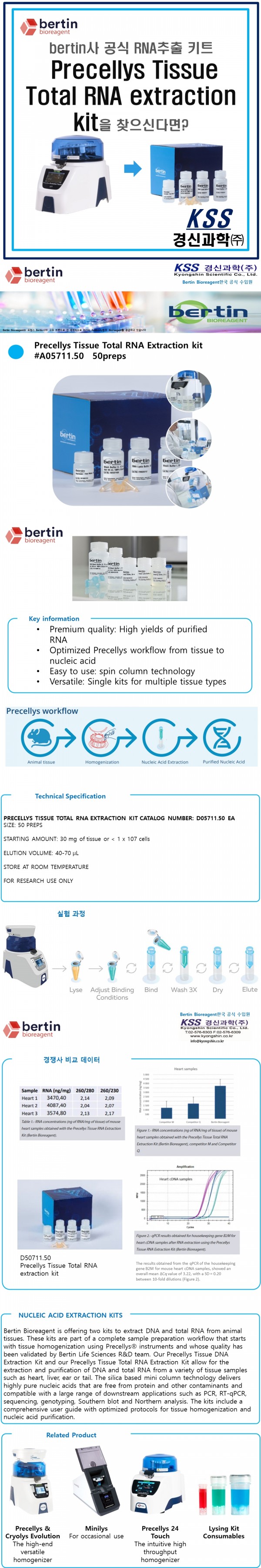 #경신과학 #KSS #bertin #bertinBioreagent #RNAprepkit #NeucleicAcid #Homogenizer #Precellys